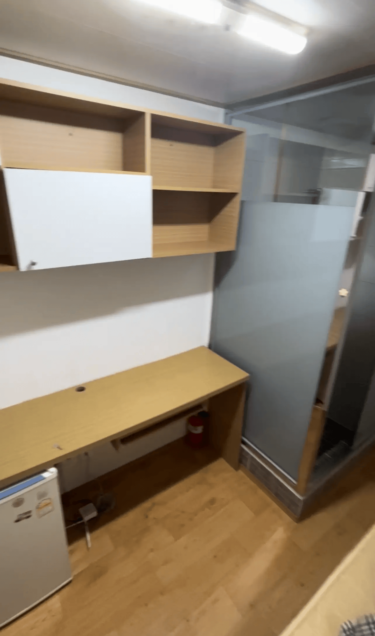 我后面才发现,在房间里面待一会儿就会觉得很压抑,因为没有任何阳光。我的房间没有真正的窗户,墙上凿了窗户的模样,但外面就是另一个隔间的墙壁。人在里面是感知不到时间的变化的。它的优点是,方便,便宜,月租2200,比学校宿舍还便宜800块。