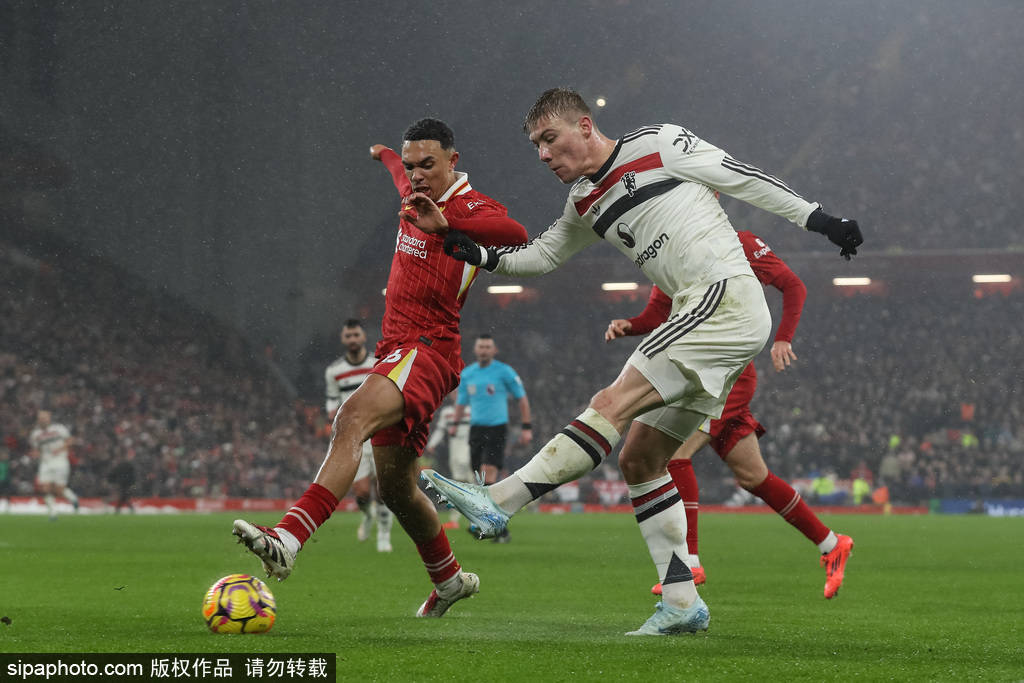 北京时间1月6日00:30,2024-25赛季英超联赛第20轮焦点战打响,坐镇安菲尔德球场的利物浦2-2战平曼联,正赛四连胜被终结,但连续24场不败,在英超积分榜上少赛一场的情况下6分优势领跑。利桑德罗-马丁内斯第52分钟爆射助曼联先拔头筹,加克波和萨拉赫随后连入两球助利物浦反超,阿玛德第80分钟扳平比分,助曼联结束四连败。
