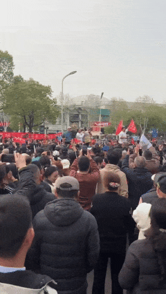 湖南刀迷也在场外举行“歌迷演唱会”,高扬着旗帜放声高唱刀郎的歌曲。