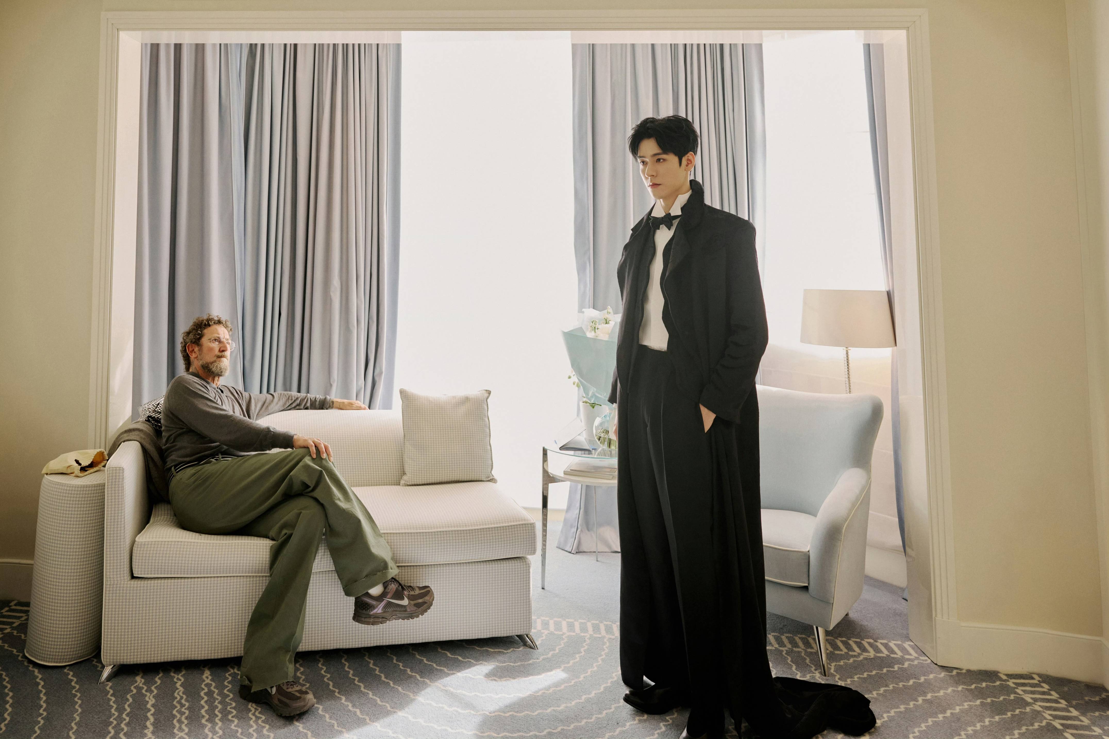 黑色丝绒大衣凸显出龚俊超模般的高挑身段,搭配波浪设计的西装套装,冷冽优雅的剪裁与东方绅士气质相融合,俊俊子再次让“翩翩公子”四个字具象化了。