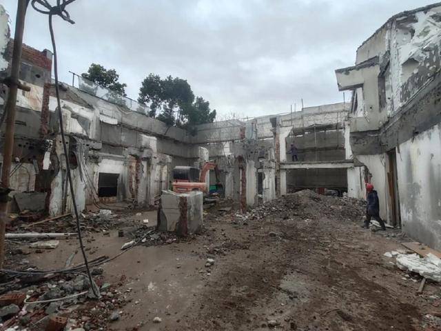 先是屋顶全部被掀开了,后来都拆到只剩几堵墙了!