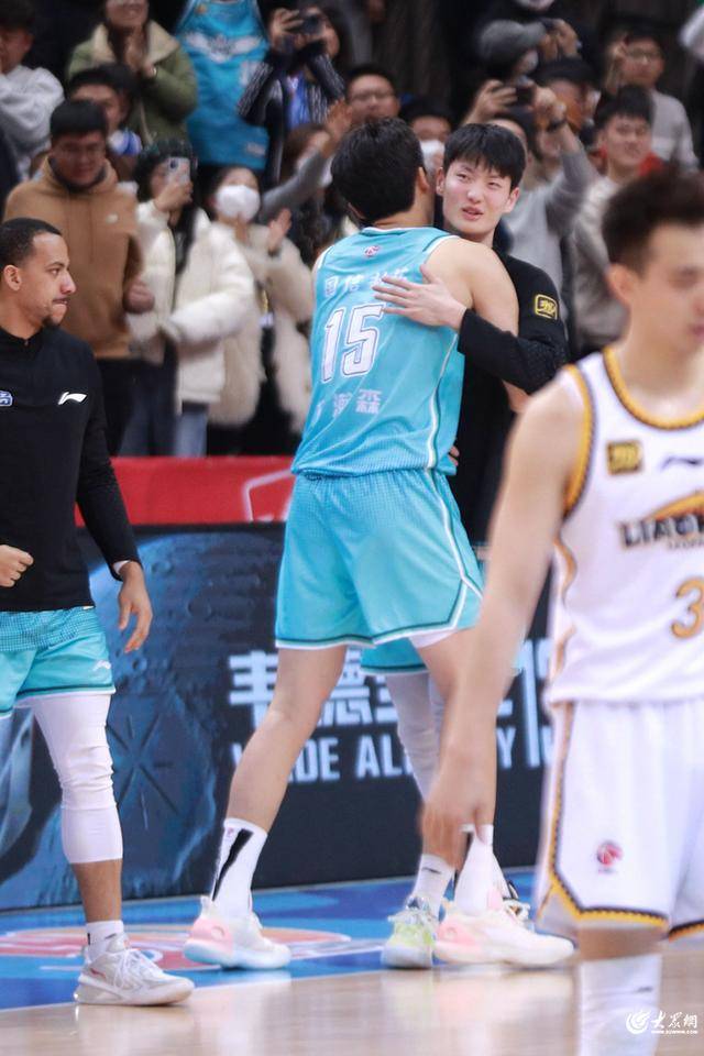 赛后,杨瀚森拥抱记卓。